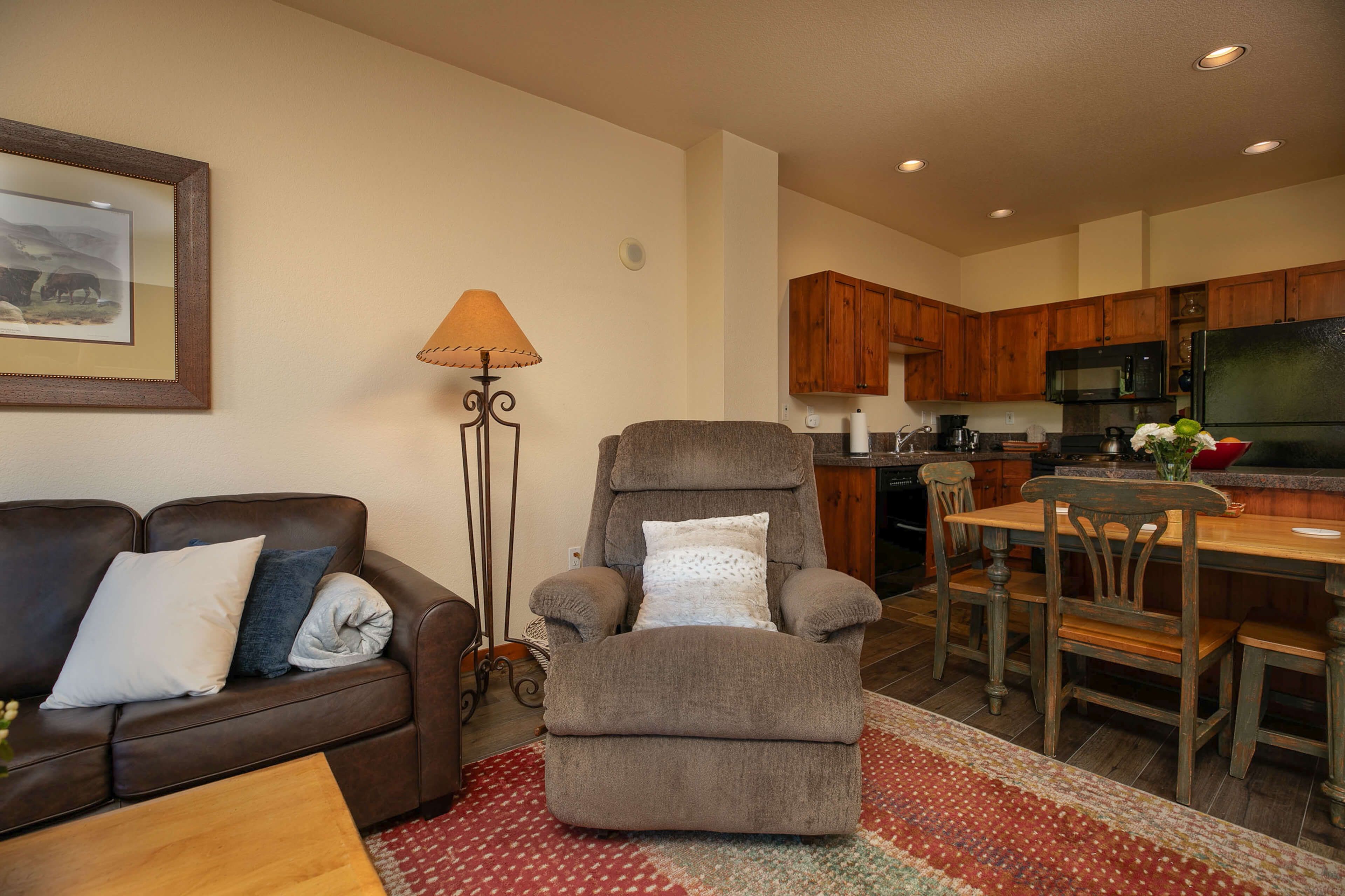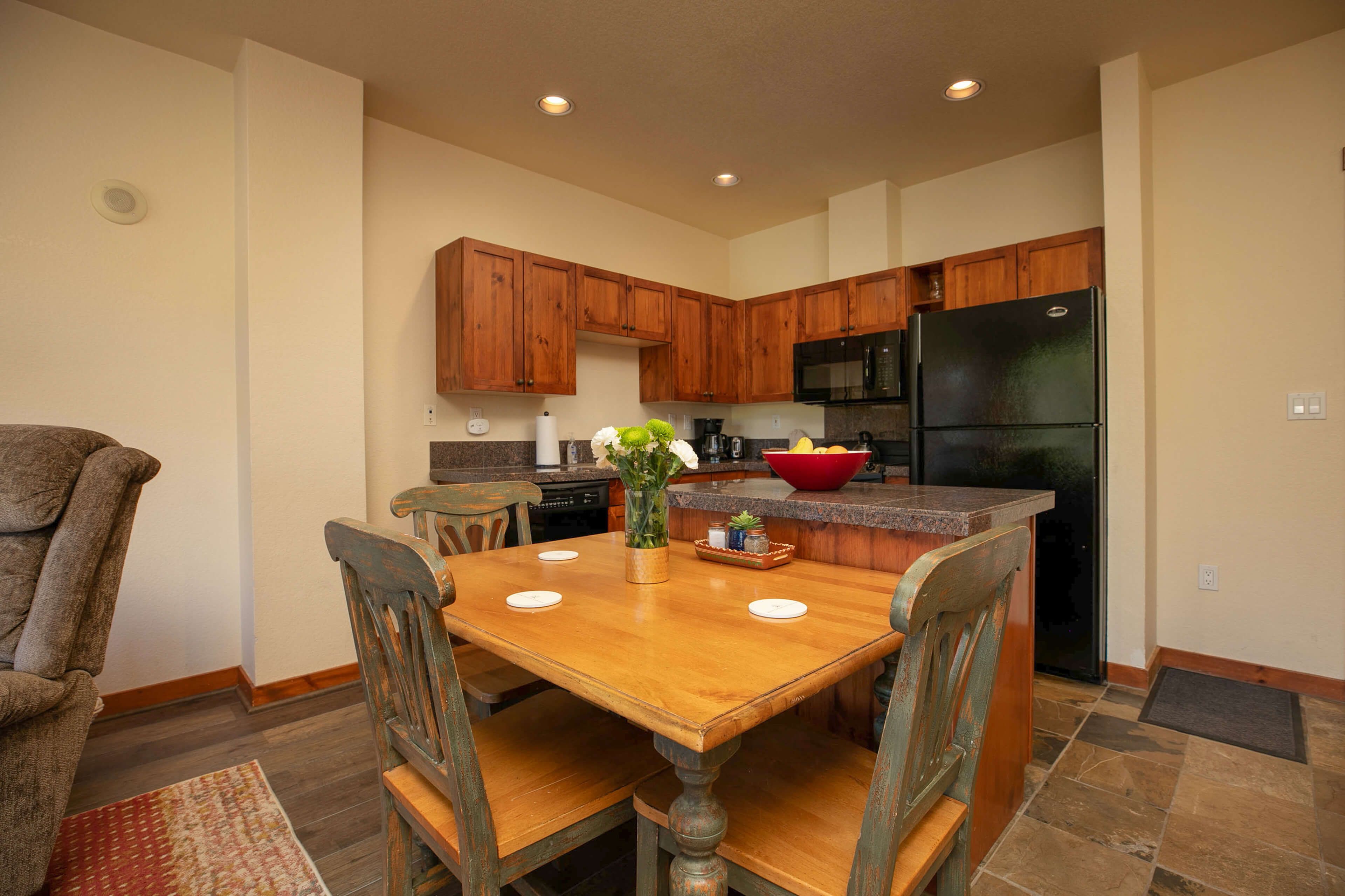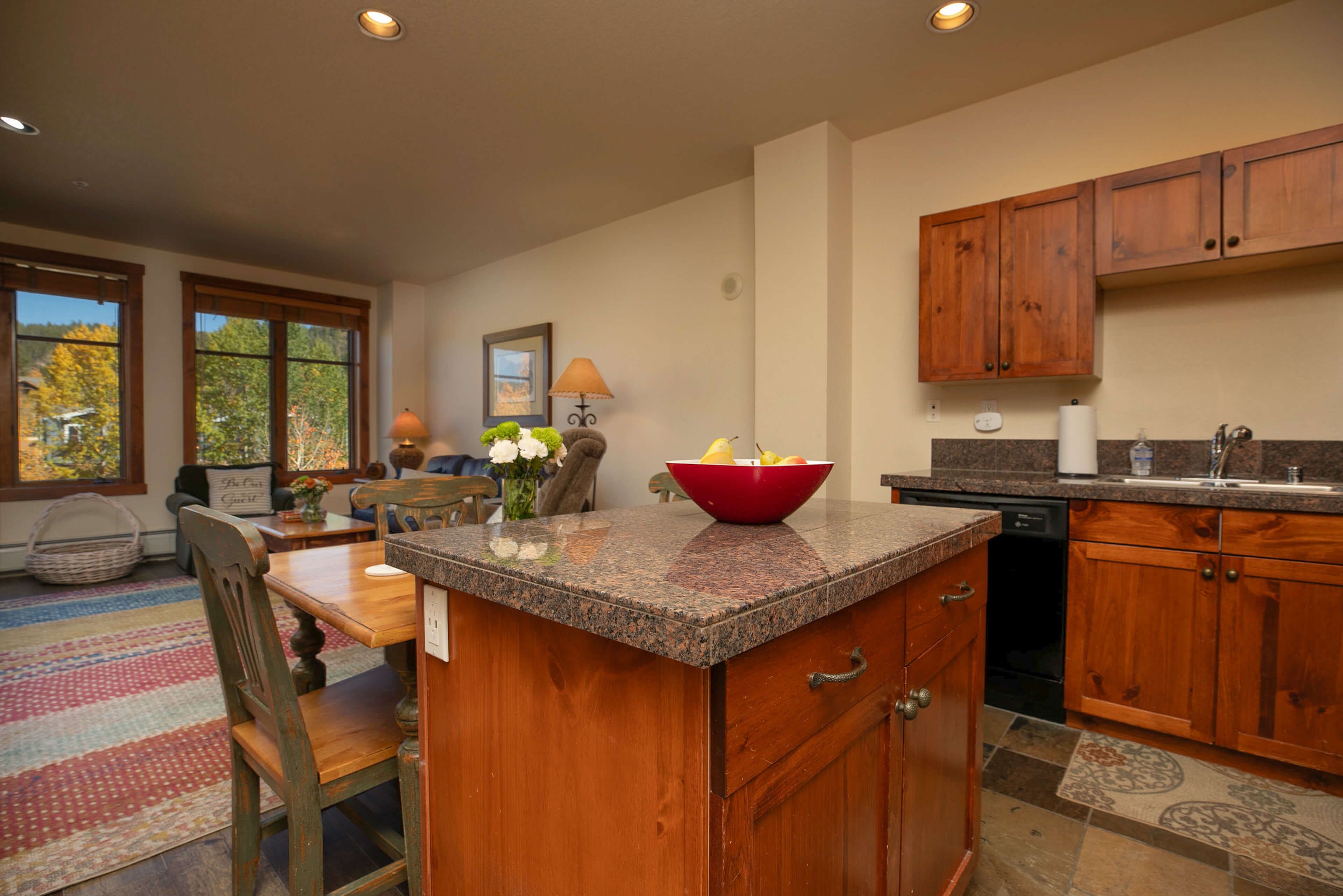 This 1-bedroom, 1-bathroom condo is the perfect Breckenridge retreat for up to four guests. The living area has plenty of seating and a large Smart TV for catching a movie or the morning snow report. The fully equipped kitchen features granite counters and all the gear you’ll need to keep everyone happy and fed when you’re not exploring Breck’s fantastic dining options.Â